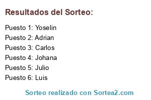 Lista de participantes: Adrian, Julio, Yoselyn, Carlos, Luis, Johana.