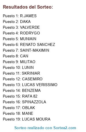 Lista de participantes: OBLAK, LUNIN, SKRINIAR, MILITAO, LUCAS VERISSIMO, R.JAMES, SPINAZZOLA, CASEMIRO, VALVERDE, RENATO SANCHEZ, CAN, MUNIAIN, SAINT-MAXIMIN, RAFA 82, RODRYGO, LUCAS MOURA, MANE, BENZEMA, DAKA.
