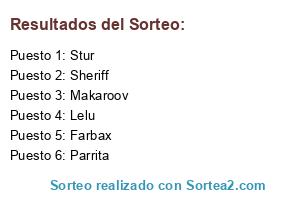 Lista de participantes: Farbax, Lelu, Makaroov, Parrita, Sheriff, Stur.