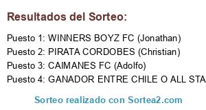 Lista de participantes: PIRATA CORDOBES (Christian), WINNERS BOYZ FC (Jonathan), CAIMANES FC (Adolfo), GANADOR ENTRE CHILE O ALL STARS.