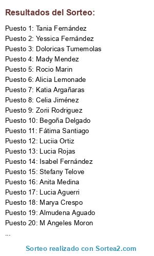 Lista de participantes: Alicia Lemonade, Almudena Aguado, Anita Medina, Begoña Delgado, Celia Jiménez, Doloricas Tumemolas, Fátima Santiago, Isabel Fernández, Katia Argañaras, Lucia Aguerri, Lucia Rojas, Luciia Ortiz, M Angeles Moron, Mady Mendez, Marya Crespo, Olimpia Jiménez, Rocio Marin, Stefany Telove, Tania Fernández, Yessica Fernández, Zorii Rodriguez.