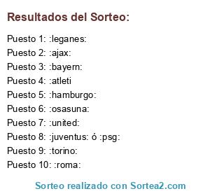Lista de participantes: :osasuna:, :juventus: ó :psg:, :torino:, :roma:, :leganes:, :united:, :hamburgo:, :ajax:, :bayern:, :atleti.