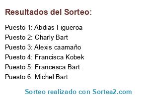 Lista de participantes: Michel Bart, Francisca Kobek, Charly Bart, Francesca Bart, Alexis caamaño, Abdias Figueroa.