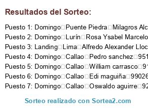 Resultados del sorteo: