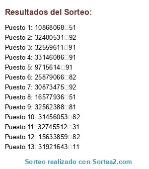 Resultados del sorteo: