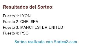 Lista de participantes: CHELSEA, LYON, MANCHESTER UNITED, PSG.