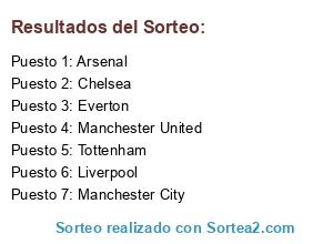 Lista de participantes: Manchester City, Liverpool, Chelsea, Tottenham, Arsenal, Manchester United, Everton.