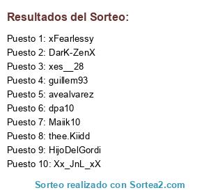 Lista de participantes: thee.Kiidd, xFearlessy, avealvarez, dpa10, xes__28, HijoDelGordi, Xx_JnL_xX, DarK-ZenX, Maiik10, guillem93.