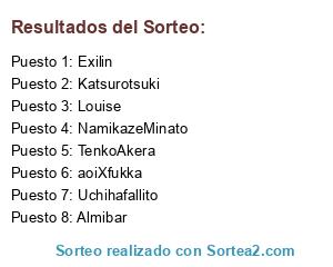 Lista de participantes: TenkoAkera, aoiXfukka, Saul, Xander, SakaiDokuko, NamikazeMinato, Anysha, ShisuiUchicha, Louise, Katsurotsuki, Exilin, Ermarito, ObitoUchiha, Pijaloca, BenignoMan, kuroneko, Uchihafallito, PeterUchiha, Waldo, Tano, Lex, Leimer, Augzto, Almibar, RinkadoShiki, bladeoxx, TsuruHaseki, Takeo, Asu.