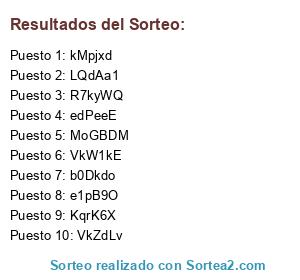 Este sorteo ha sido certificado por Sortea2. Sortea2 garantiza que: