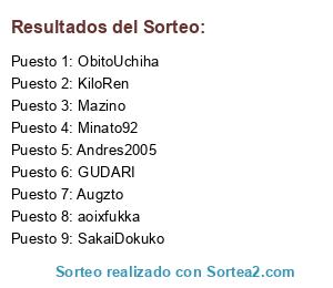 Lista de participantes: aoixfukka, THEFELO, Sairex, Louise, Xander, SakaiDokuko, GUDARI, Minato92, Augzto, ObitoUchiha, Mazino, Andres2005, kuroneko, YugaAbe, KiloRen, BladeUchiha, AgetenWamg.