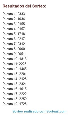 Resultados del sorteo: