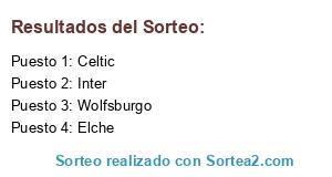 Lista de participantes: Elche, Wolfsburgo, Inter, Celtic.