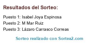 Lista de participantes: Rocio Calderon Elvira , Ana Romera Torres , Mar AC , Soledad Rodriguez Lopez , Lázaro Carrasco Correas , Sta Melanie Gonzàlez , Isabela Gámez Joya , África Guerrero , Vane SSa Blonde , Estela Sanchez Garcia , Laura García , Saray GO , Esther Vindel Gamonal , Maria Isabel Ferrer Lopez , Maria Isabel Ferrer Lopez Me gustaría con Jose Manuel Lermos Mendez , Isa López Bonilla , Javier de la Torre , Silvia Galindo Lopez , Isa Fernández , Esther Gr Hi , Belen Borbalan , Juan Valverde García , Marta Ág , Isabel Joya Espinosa , Angelita García , Andrea Zapata , Sandra Ferrer , Magda GP , Cynthia Cartes Lagos , Raquel Arana Aviles , Loly Callejon , Natalia Urrutia Cruz , Luisa María Segovia Moreno , Marta RM , Ali San , Isabel Maria Sanchez Hernandez , Alejandra Román Mañas , María Isabel Gil Martínez , Celia Sánchez López , Nazaret RG , Teresa Godoy Rodriguez , M Mar Ruiz , Danii Milán , Jesus Ruiz , Tesi Moreno , Angel Gonzalez , María Relaño de Hoces , Raquel Moreno Meca , David López Santander , David López Gutiérrez , Priscila Fernandez Alcalde , María Luisa Mrtz Mrtz , Pilar Lopez , Carmen Fernández Agudo , Rubén Ál , David Figueredo Ruiz , Olga Guirado , Maria Jesus Moreno , Ali Tester , Rafael Francisco Plaza , Loli Sanchez Sanchez , Laura Torrecillas Auñón , Pilar Lopez Camacho , Rosa Moreno Hernandez , Ana Belen Martinez Ruiz , Piedad Ortiz Cabrera , Maria Del Mar Leon Miralles , Belen Martinez Manzano , Javi Pindeluxe , Ricardo Aparicio , Rocio Lopez.