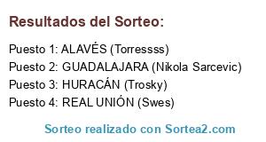 Lista de participantes: ALAVÉS (Torressss), HURACÁN (Trosky), GUADALAJARA (Nikola Sarcevic), REAL UNIÓN (Swes).