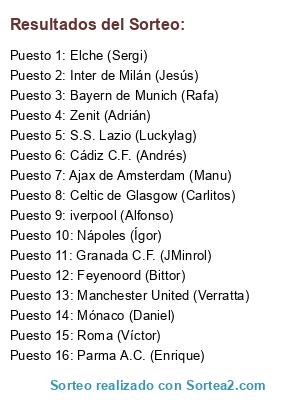 Resultados del sorteo: