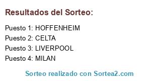 Lista de participantes: LIVERPOOL, MILAN, HOFFENHEIM, CELTA.