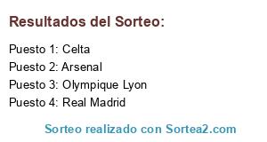 Lista de participantes: Real Madrid, Celta, Arsenal, Olympique Lyon.