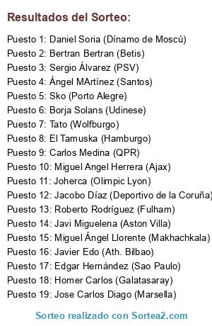 Lista de participantes: Sergio Álvarez (PSV), Joherca (Olimpic Lyon), Javier Edo (Ath. Bilbao), Miguel Angel Herrera (Ajax), Ángel MArtínez (Santos), Carlos Medina (QPR), Javi Miguelena (Aston Villa), Miguel Ángel Llorente (Makhachkala), Roberto Rodríguez (Fulham), Tato (Wolfburgo), Borja Solans (Udinese), Jose Carlos Diago (Marsella), Homer Carlos (Galatasaray), Bertran Bertran (Betis), Sko (Porto Alegre), El Tamuska (Hamburgo), Jacobo Díaz (Deportivo de la Coruña), Edgar Hernández (Sao Paulo), Daniel Soria (Dínamo de Moscú).