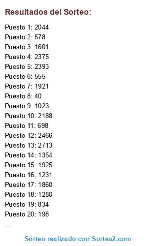 Resultados del sorteo:
