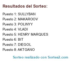Lista de participantes: HENRY MARQUES, POLINYY, VLADI, SULLYBAN, MAKAROOV, BIT, DIEGOL, AKTGANO.