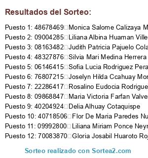 Resultados del sorteo: