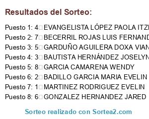 Resultados del sorteo: