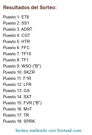 Lista de participantes: MnT, ET8, ADRT, TF10, FVR ("B"), HTR, SKZR, SS1, CGT, WSO ("B"), SXT, SPRK, FFC, F1R, GS, TR, LFR, TF1.