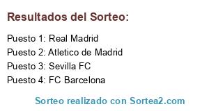 Lista de participantes: Real Madrid, FC Barcelona, Atletico de Madrid, Sevilla FC.