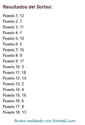 Resultados del sorteo: