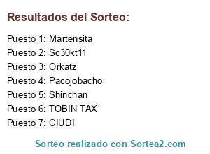 Lista de participantes: Martensita, TOBIN TAX, Orkatz, Sc30kt11, Pacojobacho, Shinchan, CIUDI.