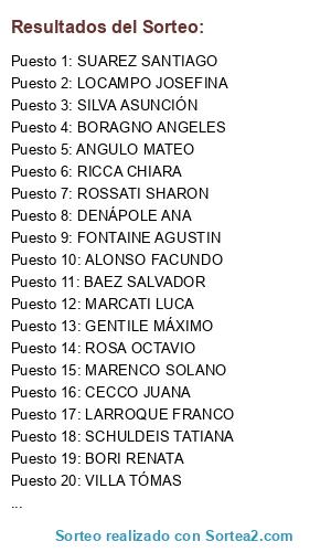 Lista de participantes: ARENAS PIA, BARRA AGUSTIN, BIAGINI LUCÍA, BORI RENATA, BOTTA NICÓLAS, CABACHIEFF KIARA, CABRERA MATEO, CIRILLO CANDELA, CONDE FACUNDO, GAUNA BENJAMÍN, GENOVECIO VICTORIA, GENTILE MÁXIMO, HAUGHTON TOMAS, MARENCO SOLANO, MENDIOLA ÁNDRES, MORELLO SOL, MORENO LORENZO, RICCA CHIARA, RICCI ANA, RODRÍGUEZ MÁXIMO, ROSA OCTAVIO, ROSSATI SHARON, SASONE PAZ, SILVA ASUNCIÓN, SPINELLI MELINA, SPINELLI TOMÁS, SUAREZ SANTIAGO, VELTANI VICTORIA, ZAMMITTO MATEO, ALONSO FACUNDO, ANGULO MATEO, BAEZ SALVADOR, BERMUDEZ CAMILA, BORAGNO ANGELES, CARAMELO MATEO, CECCO JUANA, CELAY CLARA, CEREIJO BENJAMÍN, CHANGAZO TOBIAS, COSTILLA YAZMÍN, DE GRUTTOLA ABRIL, DE GRUTTOLA NICÓLAS, DENÁPOLE ANA, ESPINDOLA FRANCISCO, ESTRELLA GIULIANA, FONTAINE AGUSTIN, HORN LUCIA, IGON JUANA, IVALDI MERLINA, LARROQUE FRANCO, LOCAMPO JOSEFINA, LOMBARDO MICAELA, MARCATI LUCA, MARCHESINI JULIA, MONES RUIZ IGNACIO, PAMPURI JOAQUÍN, PERRETTI TÓMAS, RÉVORA BELÉN, ROSALES MAÍA, ROSSI VALENTINO, SCARDULLA TATIANA, SCHULDEIS TATIANA, VILLA TÓMAS.