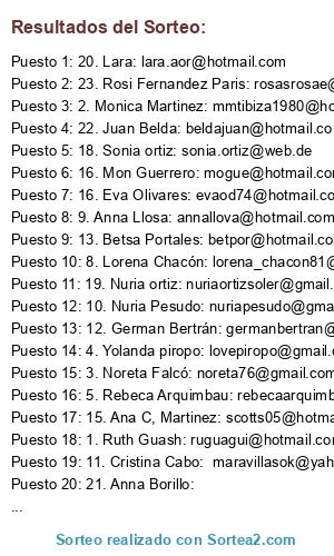 - Puesto 10: 8. Lorena Chacón: lorena_chacon81@hotmail.com