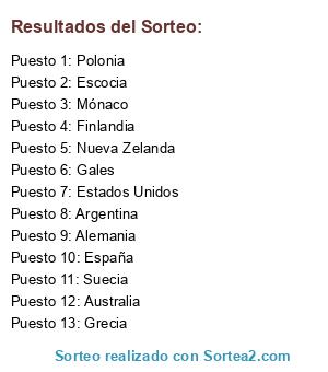 Lista de participantes: Argentina, Australia, Finlandia, Alemania, Grecia, Mónaco, Nueva Zelanda, Polonia, España, Suecia, Estados Unidos, Gales, Escocia.