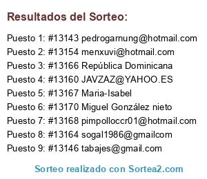 - Ganador 2: #13154 menxuvi@hotmail.com