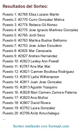 - Ganador 3: #2774 Rebeca Gil Alonso