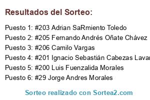 - Ganador: #203 Adrian SaRmiento Toledo