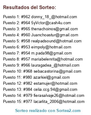 - Ganador 3: #965 thenachoinos@gmail.com