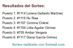Lista de participantes: #705 Ambar Vergara, #706 Alicia Molina Rabadán, #715 Cristina Obregon, #724 Raul Gomez Perez, #728 Alba Val, #731 Lily Martin, #737 Beatriz Gil, #800 Alex Martinez, #898 Francisco José Sánchez Iñesta, #1029 Raul Ruiz, #1037 Jaime Páginas, #1049 Susana Martín, #1071 Carolina Campano Roldan, #1074 Ropita de Leonardito, #1104 Lidia Aguilar Gómez, #1107 Corinne Chérel, #1114 Lorena Gallardo Martinez, #1116 Nu Riaa, #1117 Diana García Gómez, #1167 Alba Fernández López, #1181 Katerina Knyazhechenko, #1186 Denise Serra, #1287 Liz Medina, #1293 Guillermo Jose Manzanares Navarro, #1298 Javi Salinas, #1299 Javi Salinasa, #1300 Rosario GT.