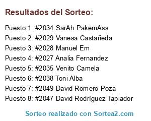 Lista de participantes: #1934 Pura Cristinita, #1935 Xavi Latorre Abad, #1936 Victor Somoza, #1937 Marc BeNi, #1938 Joan Gorro Rovira, #1939 Woodcutter Manero, #1940 Laura Ponce Picazo, #1941 Guillermo Jose Manzanares Navarro, #1942 Hector Llorca, #1943 Izhar TG, #1944 Arturas Norvilas, #1945 Ruben G. Perez, #1946 Xavier Flotats, #1947 Raul Perez Gonzalez, #1948 Alex Cañarte Toala, #1954 Jose Molina Correa, #1957 Andres Wizz Jordan, #1958 David Hdz, #1961 Iñigo Martínez, #1962 Ivan Gonzalez, #1963 Francisco Sánchez, #1965 Eilaf Adil, #1967 Gonzalo Duarte, #1968 Júlia Gómez, #1970 Miquel de la Orden, #1971 Alex Molina, #1972 Blankodiseña Diseño Gráfico, #1974 Marc Ballbè, #1977 Regina Anastasiyenko, #1979 Francisco Morilla, #1980 Oriol PF, #1983 Sergio Gardella, #1985 Abm Imagen, #1986 Sandra Noa Noa, #1989 Juan Santos, #1992 Javier Murillo Carrasco, #1993 Eduard Roset, #1994 Rata Mma RedSkin Kombat Oi, #1995 Sam Danko, #1996 Carlos Duat Gonzalez, #1997 Silvia Añorbe Tesouro, #2000 Cesar Ibi, #2001 David Monterrubio Tejedor, #2002 Don Alonso de Quixano, #2006 Ivan Fernandez, #2008 Gerard Martinez, #2011 Pol Lechuga, #2012 Xavi PS, #2013 Lydia Witherspoon, #2015 Raul Ruiz, #2017 David Navarro, #2018 Nun Cobalchini Coma, #2019 Victor Perez Villarroya, #2021 Manel Múrez Bts, #2022 Joaquin del Toro, #2023 Manuel Jesus Sanchez Rios, #2024 Juan Del Leon Edlp, #2025 Ruso Noventayseis, #2026 Cristian Carrizo, #2027 Analia Fernandez, #2028 Manuel Em, #2029 Vanesa Castañeda, #2034 SarAh PakemAss, #2035 Venito Camela, #2038 Toni Alba, #2039 Raul Gomez Perez, #2041 Carlos Yungue, #2046 Sergio Anguera, #2047 David Rodríguez Tapiador, #2049 David Romero Poza, #2050 Pablo Rubio Prestel, #2051 Drako Sangre El-Filosoficador, #2052 Ramona Plaiasu, #2053 Churros Gratis, #2055 Josefa Criado Azor, #2056 Braian Bengolea, #2058 Diego Suarez, #2060 Ricky Braavo, #2116 Sublimado Korrosivo, #2144 Nico Corzo, #2146 Jma Kadavo, #2148 David Peña Beltran, #2157 Kryss BuPe, #2161 Beymar Fernandez, #2165 Miguel Robres, #2169 Fer Torres, #2177 Marc Ballesta, #2182 Joshue Raul Matute, #2183 Oscar Bello Miguel, #2194 Ismael Garcia Garcia, #2196 Gloria Torrejon Muñoz, #2204 Indira Dueñas Zuñiga, #2214 Rocio Cruz Elich.