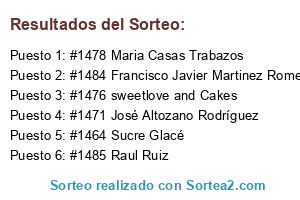 Lista de participantes: #1389 Fabiola Garrido, #1390 Esperanza Rodriguez Arrocha, #1391 Maria P-s, #1392 Las Kekas de Luna, #1394 Yolanda Puente del Rio, #1395 Antares Cifuentes Morales, #1396 Dde Dolç, #1399 Maribel Pereira, #1400 Daiva Prie, #1401 Ana Herrero Infantes, #1402 Anna Gonzalez, #1403 Lola A Secas, #1404 Nathalie Lebe, #1405 Montse Perez, #1406 Marisa Lapeña Catalina, #1407 Meri Alba, #1408 Mar Meseguer, #1409 Tana Alvarez Francoso, #1410 Alexia Prieto, #1411 Sandra Fragusto, #1412 Estébana Rivas, #1414 Gaizka Blanco, #1415 Eloy Blanco, #1416 Ana Lopez, #1417 Martinez Palau Ruth, #1418 Yolanda Myms Art, #1419 Trastadas Hechoamano Lorena Domínguez Llop, #1421 Rosa Garcia Tibau, #1422 Rosi Barrera Cordoba, #1423 Real Tartas, #1424 Pepi Corpas, #1425 Judith Fernandez Gonzalez, #1426 Mar Diez, #1429 Merche Pascual, #1430 Claudia Sol, #1432 Ainhoa Morales, #1434 Lorenita Olmo, #1435 Krestucia Mary, #1436 Mary Gomez Alvarez, #1437 Isabel Rosekitchen, #1438 Maria Perez Perez, #1439 Cristina Gomez H, #1440 Maite's Cookies, #1441 Guillermo Jose Manzanares Navarro, #1443 Eva Fernández, #1444 Mireia Elteucupcake, #1445 Montse Salvador Escoda, #1446 Dorleta Sofitxu Sa, #1447 Francisco José Sánchez Iñesta, #1448 Komatsu Hachi, #1449 Cristina Alvarez, #1451 Eduardo Avellaneda García, #1452 Cristina Palomares, #1453 Anna Casado Godino, #1454 Carol Avellaneda, #1455 Rebeca Hereros Garay, #1456 Eva fernandez, #1457 Nuria Ariño, #1458 Jesus Castellanos Garcia, #1459 Vane's Dulces, #1462 Mireia Canals Lupiañez, #1463 Sandra Ferrer Guinot, #1464 Sucre Glacé, #1471 José Altozano Rodríguez, #1472 Alicia Piñeiro pastoriza, #1476 sweetlove and Cakes, #1478 Maria Casas Trabazos, #1484 Francisco Javier Martinez Romero, #1485 Raul Ruiz, #1491 Karu de Corvalan, #1498 Ines Padilla Fernandez Vega, #1512 Campanilla VA, #1515 Jessica Bocanegra Gonzalez, #1522 Katerina Knyazhechenko, #1544 Ivan Ivanov Georgiev, #1549 Inma Morante, #1554 Marta Codina, #1556 Luigi Chaparro Romero, #1557 Gisela Plaza Serra, #1589 Judith JU, #1645 Ana Enrique, #1659 Sary Sary, #1660 Avelina Mundo Rosaa, #1666 Noelia Pérez, #1667 Lupita Romero, #1670 Sandra Neko, #1672 Rosario GT, #1677 Miriell Nyan, #1683 Inés Lorenzo Fernández, #1685 Raquel Pons, #1692 Lorenz Genios, #1696 Mary Ar, #1700 Elena Domingo Cabrerizo, #1703 Un Ratón En Mi Cocina, #1704 Tamara Martinez Carrero, #1726 Sofi Paez, #1738 Marta Diaz Muñoz, #1739 Javi Salinas, #1740 Javi Salinasa.