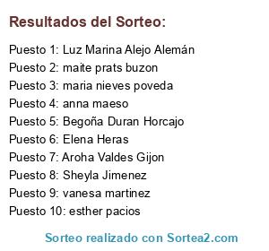 Lista de participantes: lidyane fonseca, teresa Mariluz Pelaez, Jackeline Rosales Rodríguez, antonio izquierdo palacio, Pilar Parreño Ariza, María Fuentes Bardanca, Yolanda Sanchez, maite martin, Antonia Martorell Gual, Pedro Diaz, Rocio Garcia Gutierrez, Ana Ferreras Gutiérrez, Ana Alabau, NEREIDA SANCHEZ SANCHEZ, m dolores berlinches, lorena diaz fernandez, Rosa Maria Alvarez Sanz, esther rubio linares, Ingrid Ceballos, ENCARNI BERNABE ALVAREX, Belén Ramos ojea, pili Rodríguez rego, M.ANGELES MARTIN DIAZ, Aurora Molina, Elena Martínez Bautista, enrique palanca sarrio, Esmeralda Barcelo Diaz, Isabel Poblet Fernández, Estela Domínguez de Vicente, Dennis Olaru, Susana Sillero, patricia damiani pelaez, Macarena López herrero, Sonia Rosado Muñoz, LUCIA ALBERICH RUIZ, mariantonia martin sandez, susana castaño sillero, Sonia Garcia Soltero, Maria Isabel Gallo Feo, Begoña Duran Horcajo, Jessica Jimenez Jimenez, Alejandro Camañ Falomir, maria dulma, Marta Noguero Vergés, rosa maria santos ruiz, valentin pastor sanluis, Rosa Alemany, MERCEDES rodrigo, Vicente vidal Granell, clara lopez otero, Juan Carballal Argüello, eva diez, M. CONCEPCION LOPEZ DEL CASTILLO, amparo fenollar blasco, CHUS puy sorrosal, Cristina García Morales, ROSA ISABEL CALONGE LOPEZ, Mar Noriega, Marta Becerra Muñoz, nuria Gamazo Martínez, Leila Tió Badia, Inma Tremearne barroso, belén busto garcía, Alicia Santos Honguero, Montse Cuenca Cobo, amaya mateos, Marieta Pérez, Alejandra Jurado Gómez, marian polo corell, inma lopez mora, Zorka Maneva Tabakova, Montse Heredia, isaac perez velazquez, Cristina Serrano Monter, silvia Fernández Gonzalo, Olatz Solores, LIDIA TORNELL, Lidia Uriol Palau, toni Álvarez, lucia alvarez garcia, julia hernandez lopez, francisca gallardo romero, ESTHER LOPEZ, Verónica Jiménez Gallardo, Susana Sánchez Montes, nicolas riggi, Elena Riberas, maria jose alcolea rubio, marta gonzalez fernandez, nuria Velazquez Liebana, Amparo Duran León, Julia Torres, chelo medina sanz, Javier Argüelles, Maria Jose Miralles Yelamos, Aldo chelton Valencia alvarez, Cristina Ibañez Garcia, GEMMA OCTAVIO CASCALES, ANA MARÍA RIVEIRA RUANOVA, Maria Lourdes Fernandez Moares, sabrina del valle, Montserrat CHAMIZO GARCÍA, Maria del Pilar Lidueña Quesada, M. Aranzazu Fernández Fariñas, Vanesa Orti Precedo, carolina guerrero garcia, Concepcion Rodriguez Landete, Elena Urbano Galeano, Lidia Villar Belinchon, Cristina Gómez egido, Liz Gocher, Miriam Rojas alcaide, Aida Romero Mecho, Melissa Becerra herrada, Rosa Ana Alonso Moran, marta Carabassa Rubio, MARIA ROSA ESPINOSA SUAREZ, Diana Da silva alves, Maria Caparros, yolanda sisamon, maria belen esteso Martinez, gema guerrero marin, fanny rapiso caballero, Alicia Grande, Maria José Lablanca, carmen García gonzalez, María José Becerra Gómez, jesica Garcia Herrera, Maria gabriela Jordanidis Vallejo, ester monterde herrero, luisa garcia martin, M Emilia Pini, pilar salgado sanchez, Toñi Bustos Gonzalez, Lorena Molero, rosario perez muñoz, jenifer Molina Cortés, cristina Gutierrez Torres, maria luisa Caro Alonso, Miguel Dominguez, VERONICA BARCENA DOMINGUEZ, Gloria García Barea, Cristina Bartolome soto, Deborah Valderrama Moreno, veronica garcia perez, ENCARNA MADRID RUIZ, MAR ANDRÉS ORTEGA, ESTHER PASCUAL CASTILLO, Conchi Rodríguez, Almudena Santamaría Camarmo, Montse Pruna, Vanesa Blanco Inchaurraga, clara de dios, Lourdes Abad Vidal, jose miguel oliver ortiz, mercedes garcia abad, Maria del Mar Baeza, Lorena Mascato Fraga, Ana Gago Ralfas, laura Sanz perez, Mª angeles Chaparro COnejo, Montserrat Corralero Degano, begoña luque, Mireia planas mas, Anna Figuerola lopez, Arantxa Utrilla Sanchez, Sandra Johanna Cuendis Loaisga, Ana Maria Urdaniz Arilla, Ascension Perez Garcia-Gasco, Concepción García Mediavilla, Sonia Montolio, Erica casanova Alcaine, Maria beatriz Chacón López, Beatriz Linares Rodriguez, Beatriz Aldao García, Lídia Llamas, sandra gonzalez garcía, Jose Vega, María Gascon Díaz, Maribel López López, Sonia Cobos Muela, CARMEN MARTINES LAZARO, AMELIA ARASA ALBESA, Elvira Gil Lopez, angela dominguez mogena, Ana Belén ÁVILA SÁNCHEZ, Cristina Rodriguez Fernandez, mercedes Ferrando, ROSA PORTAS COSTA, natalia suarez sanchez, Elena Cerezuela, Isabel Rodrigo Rodríguez, covadonga lopez diaz, Montse González García, araceli garcia lucio, Mª Carmen Cisneros Laforga, mari loli López morenilla, Clara Couso, Lourdes Carretero, Rocío Barbero, mihaela grigore, Susana Gonzalez Teixeira, rosa llamazares caña, alonso cardenas vazquez, annabel ACOSTA CORNEJO, Sonia Barroso Vega, Sonia Moreno Moreno, Ana Isabel Quesada Balboa, Silvina Randis, nuria navarro jordan, Rocio Pacheco Sampedro, Silvia Balbuena Adorno, Aitziber Otaola, Catalina Hernandez Ardila, Marta Hernanfo, vanessa calvo romero, Ana Isabel Vilavedra López, Mercedes Sierras Soriano, Gemma Hernandez Melero, vanessa amaro martín, Ana Galiana Vila, Sonia Castilla garcia, Malu Valdovinos rami, Monica Ballesteros, Manuel Casla Ramallo, concepcion muñoz roman, Cristina Atienza Alonso, Octavio Munar, Maria Angeles Sánchez Olmos, Rocio Lopez Martinez, susana rey, Bele Gracia, maria blanca, Susana Lucea Parejo, Susana Collado, LAURA MARTIN SANCHEZ, izaskun del val garcia, Leonor Martínez Medina, inma barcenas, Patricia Rodriguez Perez, Guacimara Padron Mahín, veronica ranchal sanchez, anabel osuna ruiz, CAROLINA ONTIVERO, celiaguapa Fortea, Marina Varela Cristia, Alex Montoya, Eva Castańeda cueva, maria rosa mastrangelo, Mayte Pañeda huerta, Aroha Valdes Gijon, sonia blanco martin, Rocío Boada Fortes, gemma pinyol franch, Alicia Oliver Espinosa, Maria José Mira Mata, Nuria Abradó Saez, Zilia Marias Cadenas, cristina diaz diez, Sonia Polvorosa Romero, Carolina Muñoz Maillo, Jenifer Pérez Guisado, Sabrina Ororbia iturriaga, paula mato rodríguez, Lucia Perez Perez, marina paradela padilla, VANESA Díaz, virginia gallardo martinez, patricia vidal vilaplana, So
