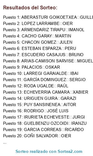 - Puesto 1: ABERASTURI GOIKOETXEA GUILLERMO