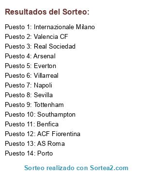 Lista de participantes: Southampton, Tottenham, Everton, Arsenal, ACF Fiorentina, Internazionale Milano, Napoli, AS Roma, Valencia CF, Real Sociedad, Sevilla, Villarreal, Benfica, Porto.