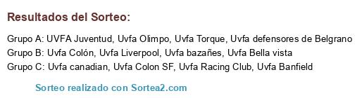 Lista de participantes: Uvfa Bella vista, Uvfa Liverpool, Uvfa defensores de Belgrano, Uvfa Racing Club, Uvfa bazañes, Uvfa Colón, Uvfa canadian, Uvfa Colon SF, Uvfa Olimpo, UVFA Juventud, Uvfa Banfield, Uvfa Torque.
