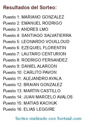 Resultados del sorteo: