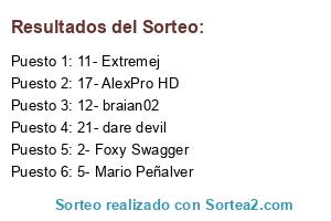 Lista de participantes: 1- By Sancho, 2- Foxy Swagger, 3- Ignacio Folgueiras Bosque, 4- Diego Fernández Salvador, 5- Mario Peñalver, 6- Eithan gabriel, 7- Andrés Alajillo, 8- siraiden09, 9- Joel Monar, 10- Sandokan2002 YT, 11- Extremej, 12- braian02, 13- ANTONIO MONTEQUEMAOCURVADOBLA, 14- BetPock, 15- PokeMaster, 16- poke gameplay, 17- AlexPro HD, 18- 9 Años, 19- ElMecha asddas, 20- Galaxy Gamer, 21- dare devil, 22- Tu xoxo Es MI Droga, 23- Esg Games, 24- guille javi, 25- Juanjo aldano caronza, 26- gallel danchez.