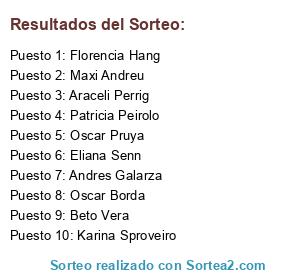 Lista de participantes: Pamela Noriega, Karina Sproveiro, Oscar Pruya, Pamela Noriega, Matias Muller, Nadia Noriega, Romanela Dobler, Gladis Berisvyl, Romanela Dobler, Matias Muller, Nadia Noriega, Beto Vera, Nela Senn, Juan Centurion, Florencia Hang, Nela Senn, Karina Sproveiro, Betiana Kummer, Emanuel Figueroa, Andres Galarza, Oscar Borda, Nela Senn, Gonzalo Guaymas, Pamela Noriega, Nair Brito, Juan Domingo Molina, Andres Galarza, Oscar Borda, Nela Senn, Florencia Hang, Florencia Hang, Araceli Perrig, Karina Sproveiro, Cucu Ortega, Emiliano Tapia, Maxi Andreu, Patricia Peirolo, Juan Centurion, Alejandro Bonetti, Karina Sproveiro, Ana Ulrich, Eliana Senn, Pamela Noriega, Florencia Hang, Carlos Vera, Patricia Peirolo, Juan Domingo Molina, Pamela Noriega, Araceli Perrig, Gonzalo Guaymas, Karina Sproveiro, Nair Brito, Cucu Ortega, Florencia Hang, Ana Ulrich, Pame Noriega, Gabriela Bobedilla, Emanuel Figueroa, Oscar Pruya, Florencia Hang, Maxi Andreu, Alejandro Bonetti, Karina Proveiro, Emiliano Tapia, Eliana Senn, Karina Sproveiro, Karina Sproveiro, Gladis Berisvyl.