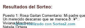 - Ganador: Rosa Gaitan Comentario: Mi padre que siempre a estado para mi, se merece este hermoso viaje, por el gran esfuerzo. Un merecido descanso que se merece.🥺❤ Viviana Marchena Natalia Ortega Ortega Nay