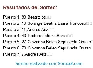 Lista de participantes: 1.Seba Muñoz✔️, 2.Seba Muñoz✔️, 3. Solange Beatriz Barra Troncoso✔️, 4.Geraldine Ortiz✔️, 5.Javi Bny's✔️, 6.Seba Muñoz✔️, 7.Andres Ariz✔️, 8.Joan Nuñez✔️, 9 Gerardo Pelaito✔️, 10.Andres Ariz✔️, 11.Andres Ariz✔️, 12. Gerardo Pelaito✔️, 13. Kote Ammour Lopez✔️, 14.Isadora Latorre Barra✔️, 15.seba barra✔️, 16.Geraldine Ortiz✔️, 17.Leito Lobito USM✔️, 18.Tio Toño✔️, 19.Solange Beatriz Barra Troncoso✔️, 20. Astrid Vanessa ✔️, 21.Juan Pinto✔️, 22.Andres Ariz✔️, 23.Geraldine Ortiz✔️, 24.Geraldine Ortiz✔️, 25.Leito Lobito USM✔️, 26.Andres Aris✔️, 27.Giovanna Belen Sepulveda Opazo✔️, 28.Patricia Troncoso✔️, 29.Javi Bny's✔️, 30.Ricky USM ✔️, 31.Carmen Gloria Merino✔️, 34.Karen Barra✔️, 35.Paula Elicer Labraña, 36.Juan Pinto✔️, 37.Kike Yaya✔️, 38. Beatriz Pt✔️, 39.Juan Pinto✔️, 40.Seba Muñoz✔️, 41.Cecy Olave, 42.jimmy✔️, 43.Isadora Latorre Barra✔️, 44.Tio toño✔️, 45.Gerardo Pelaito✔️, 46. Tia caro jardin, 48.Patricia Buchhorsts✔️, 49.Rocío Belén Díaz Pɞ✔️, 50.Emilio Cordero✔️, 51.Cecy Olave, 52.Marcela Astudillo Vega, 53.tia dani jardin✔️, 54.Ja Ny Ta✔️, 55.Giovanna Belen Sepulveda Opazo✔️, 57.tia laura jardin, 58.Patricia Troncoso✔️, 59. Tia dani jardin✔️, 60.Seba Muñoz✔️, 61.Cecy Olave, 62.Karen Barra✔️, 65.Giovanna Belen Sepulveda Opazo✔️, 68.Patricia Troncoso✔️, 69.Ivonne Sita Barra✔️, 70.Alejandra Patricia Buchhorsts✔️, 71.Mia Catalan✔️, 72.jimmy✔️, 73.Ivonne Sita Barra✔️, 74.tia dani jardin✔️, 75. Tia andrea jardin✔️, 76.Jessica Cordero✔️, 77.Leito Lobito Usm✔️, 78.Patricia Troncoso✔️, 79.Giovanna Belen Sepulveda Opazo✔️, 80.Tio Toño✔️, 81.Mia Catalan✔️, 82.tia dani jardin✔️, 83.Beatriz pt✔️, 84.Ja Ny Ta✔️, 85.Jessica Cordero✔️, 86.tia valeria jardin, 87.tia clari jardin✔️, 88.Macarena Zagal✔️, 89.Mia Catalan✔️, 90.Tio Toño✔️, 91.Mia Catalan✔️, 92.Mia Catalan ✔️, 93.Giovanna Belen Sepulveda Opazo✔️, 96.Ivonne Sita Barra✔️, 97.tia dani jardin✔️, 98.Patricia Troncoso✔️, 99. Ricky Usm✔️, 100.Geraldine Ortiz✔️.